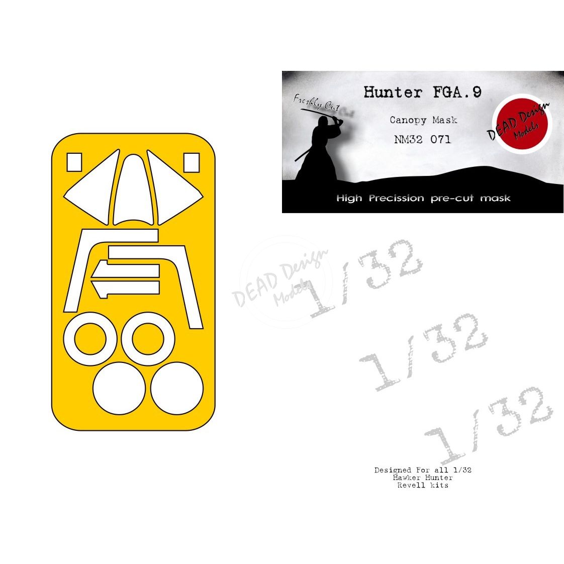 Maska na kabinu pro Hunter FGA.9 od Revell v meritku 1/32.