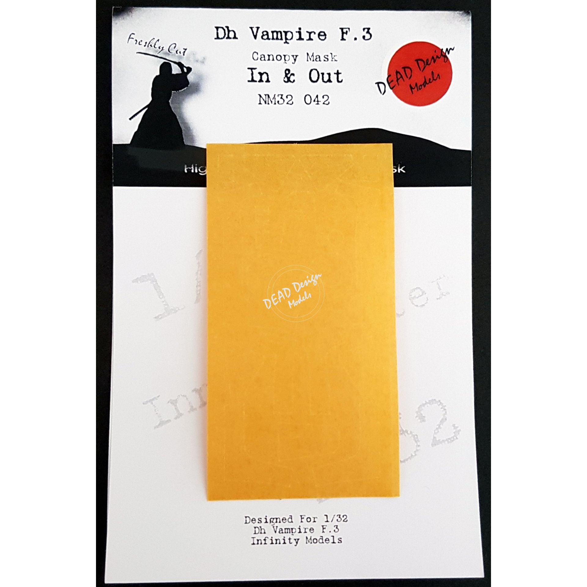 Maska na vnmitrni i vnější stranu skel kabiny pro Vampire F.3 In&Out od Infinity Models v 1/32
