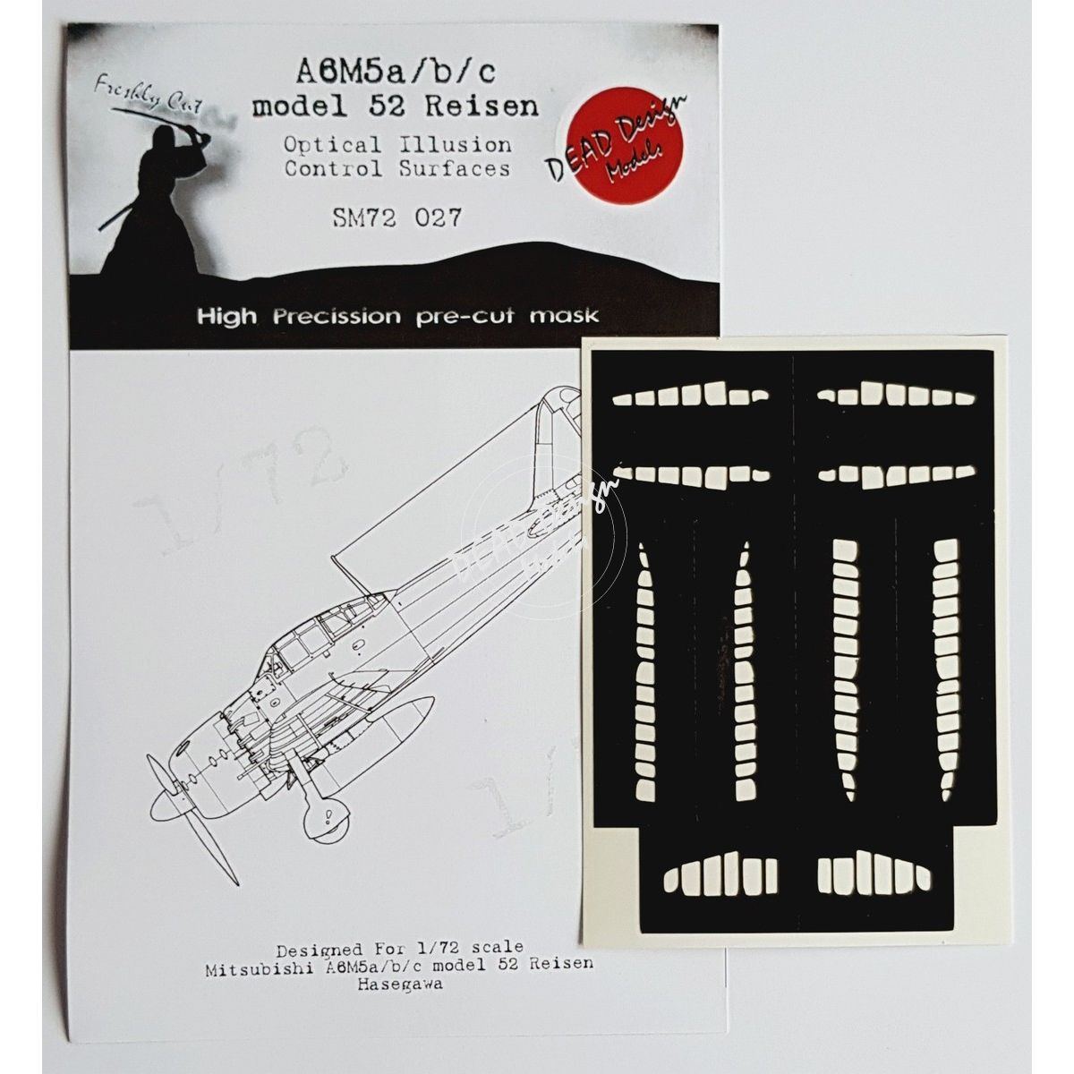 Speciální sada stříkacích masek pro znázornění plátěného povrchu ovládacích ploch pro model Mitsubishi A6M5 model 52 Reisen/ Zero v měřítku 1/72 od Hasegawy.
